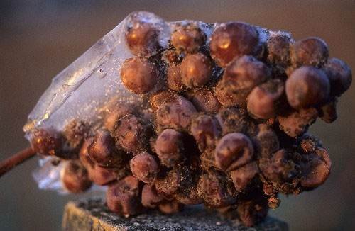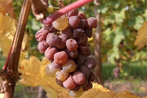 貴腐酒的名稱源自貴腐菌,當(dāng)葡萄受到這種霉菌感染時(shí),表面就會(huì)布滿小小氣孔,使葡萄原有的水分漸漸變少,慢慢萎縮成扁扁的葡萄干,而此時(shí),葡萄會(huì)自然呈現(xiàn)甜度集中的狀態(tài)。不過(guò),想要讓貴腐菌對(duì)葡萄造成恰到好處的傷害,除了夜晚要有薄霧,隔日中午還必須要有陽(yáng)光,此外,感染過(guò)程中,常會(huì)造成大量葡萄不能使用,也因此讓貴腐酒要價(jià)不菲。但甜如蜜的豐富香氣,使貴腐甜酒成為法王路易十四口中的王者之酒,就連在歌德的作品《浮士德》當(dāng)中,也曾迷戀的稱之為"生命之泉"。