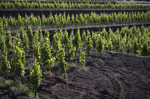 西西里島是意大利重要的葡萄酒產(chǎn)區(qū),其東岸坐落著埃特納(Mount Etna)活火山,噴發(fā)產(chǎn)生的火山巖經(jīng)人力破碎或風化后,成為西西里島產(chǎn)區(qū)典型的種植土壤?;鹕酵镣ǔ0鋷r、灰質(zhì)土以及其他火山巖的風化碎片,土壤多孔,排水性和蓄水性良好,能儲存和反射熱量,種植的葡萄樹生長態(tài)勢良好,果實成熟度佳。此外,火山土中礦物質(zhì)含量較高,含有鎂、鐵和鉀等多種元素,常被認為能給葡萄酒帶來煙熏、鐵銹和礦物味。