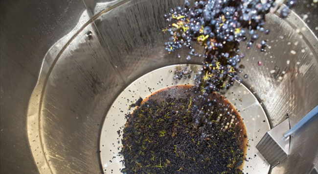 葡萄采收后會(huì)進(jìn)行去梗和破皮,但這不是必須工序,因?yàn)橛行┚魄f會(huì)特意保留果梗,保持果實(shí)顆粒完整,以便進(jìn)行整串發(fā)酵。破皮的過程需盡可能輕柔,避免破壞葡萄籽,釋放出苦油和單寧。