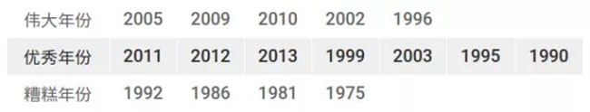 博訥丘產(chǎn)區(qū)(Côte de Beaune)年份排行