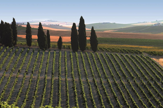 雪莉酒可以使用三個葡萄品種來進(jìn)行釀造,分別是帕洛米諾(Palomino)、佩德羅-希梅內(nèi)斯(Pedro Ximenez,簡稱PX)和亞歷山大麝香(Muscat of Alexandria)。帕洛米諾在赫雷斯廣泛種植,釀出的葡萄酒天然低酸并缺乏明顯的品種芳香,是雪莉酒的理想基酒;佩德羅-希梅內(nèi)斯和亞歷山大麝香種植量相對較少,二者皆用于釀造甜型雪莉酒。