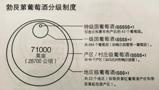 在勃艮第,土地被分為4個(gè)等級(jí),地區(qū)級(jí)Regionale、村莊級(jí)Village、一級(jí)園Premier Cru和特級(jí)園Grand Cru。