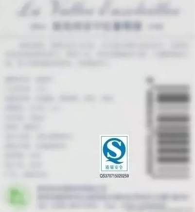 由于原裝進口的葡萄酒需要在國內(nèi)進行灌裝,而一款酒只要在中國經(jīng)過了生產(chǎn)環(huán)節(jié),葡萄酒的背標都會出現(xiàn)QS生產(chǎn)許可認證(下圖中的藍色標簽);而所有生產(chǎn)環(huán)節(jié)都在原產(chǎn)國進行的原瓶進口葡萄酒,則不會有這個QS生產(chǎn)許可認證的標志。