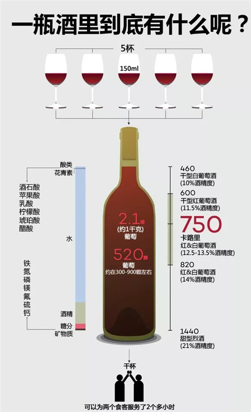2、一瓶葡萄酒大概有750卡的熱量。(根據(jù)不同品種在460-1440卡浮動(dòng))