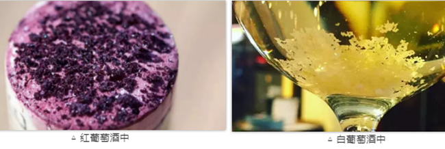 在紅葡萄酒中,酒渣一般呈現(xiàn)為紫紅色的結晶體或沉淀,而在白葡萄酒中則會呈現(xiàn)為半透明的晶狀碎渣。