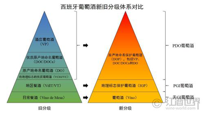 早在1932年,西班牙就仿照法國的原產(chǎn)地命名控制(Appellation d’Origine Controlee,簡稱AOC)制度,創(chuàng)立了原產(chǎn)地命名(Denominacion de Origen,簡稱DO)制度。2003年,西班牙在原有制度的基礎(chǔ)上,又建立了類似法國的葡萄酒分級體系。這一體系從低至高共分為6級: