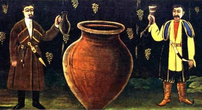 從公元前6世紀(jì)開始,格魯吉亞人就一直用一種叫做陶罐qvevri的容器來釀酒。這些巨大的粘土容器通常是用蜂蠟做襯里并埋在地下以保持溫度恒定。釀酒師在這些容器中發(fā)酵葡萄汁,同時讓葡萄皮與葡萄汁一起浸泡,這就把許多白葡萄酒變成了琥珀色,不論紅葡萄酒還是白葡萄酒都增加了單寧。