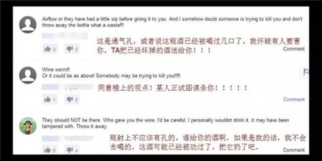 然后,有些網(wǎng)友就炸了,認(rèn)為這酒已經(jīng)被人動(dòng)過了,甚至有人認(rèn)為這是謀殺!