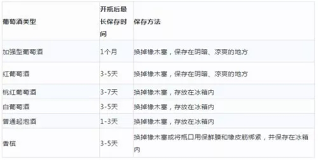 不同類型葡萄酒開(kāi)瓶后最長(zhǎng)保存時(shí)間