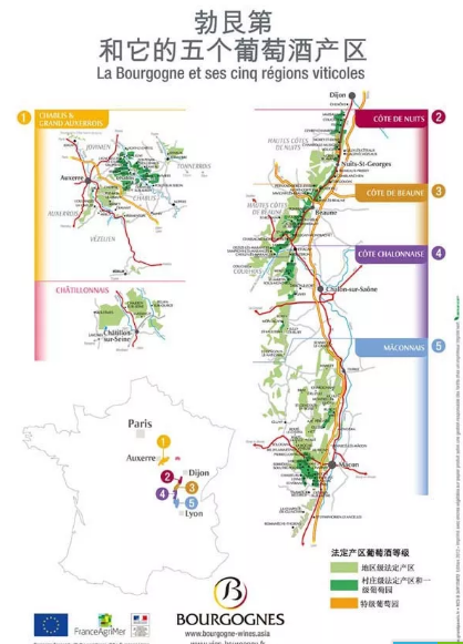 勃艮第的產(chǎn)區(qū)主要是以下五個