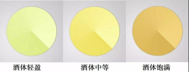 酒體輕盈的白葡萄酒,如灰皮諾(Pinot Grigio)和綠酒(Vinho Verde),顏色是從無色到淺青黃色;酒體中等的白葡萄酒,如長相思(Sauvignon Blanc)和未經(jīng)橡木桶陳釀的霞多麗(Chardonnay),顏色呈淡淡的金黃色;酒體飽滿的白葡萄酒,如經(jīng)過橡木桶陳釀的霞多麗和維歐尼(Viognier),顏色是較深的金黃色澤。