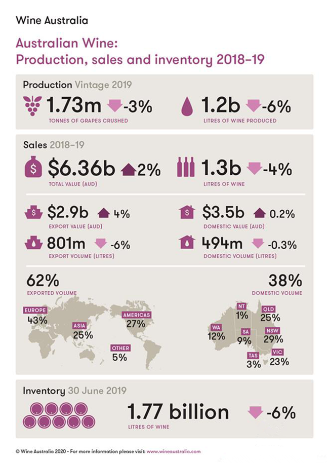 根據(jù)澳大利亞葡萄酒協(xié)會(huì)(Wine Australia)今天發(fā)布的《2019年葡萄酒生產(chǎn)銷(xiāo)售和庫(kù)存報(bào)告》顯示,澳洲葡萄酒總銷(xiāo)量連續(xù)第二年超過(guò)產(chǎn)量,這表明供應(yīng)趨緊并提升了澳大利亞葡萄酒行業(yè)的價(jià)值。