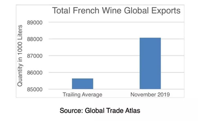 目前的關(guān)稅在迫使歐盟執(zhí)行DSB(即WTO爭端解決實體)建議方面是無效的。在實施關(guān)稅的頭一個月,法國葡萄酒貿(mào)易的全球出口卻大幅增長,恰好說明了這一點。法國葡萄酒的世界買家中,就有中國的身影。