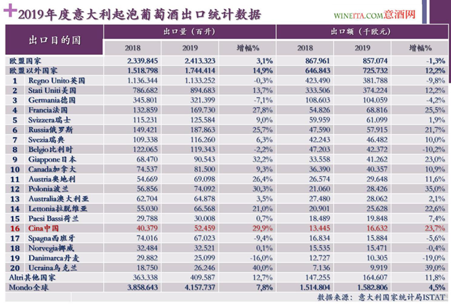 • 2019年意大利起泡酒出口量額雙升 增幅高于整體意酒出口表現(xiàn)