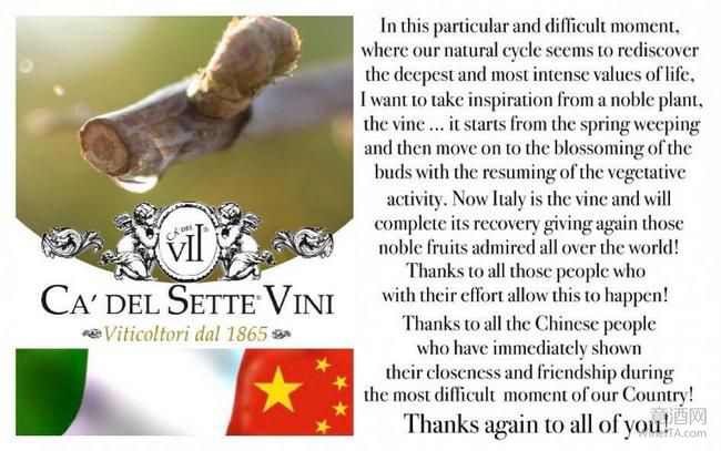 危難見真情。中國抗擊新冠病毒疫情的戰(zhàn)役剛接近尾聲,就向意大利無私的伸出援手,派出精英醫(yī)療隊、援助醫(yī)療防疫物資。意大利酒莊通過海報、宣傳,表達對中國人民的感激之情。