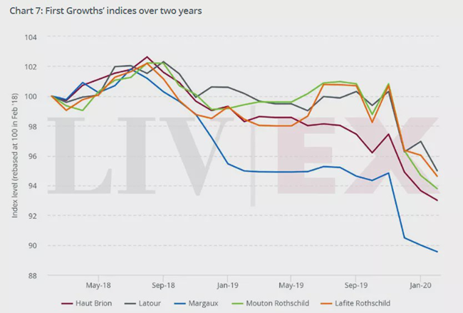 其次,中國(guó)市場(chǎng)對(duì)于法國(guó)酒的需求也有所降低。這導(dǎo)致波爾多葡萄酒加劇依賴英國(guó)市場(chǎng),英國(guó)買家依舊是波爾多期酒周最大的群體。但隨著2020年以來新冠肺炎疫情的爆發(fā),市場(chǎng)被攪亂,英鎊暴跌。在油價(jià)暴跌的背景下,股票價(jià)值大幅下跌,只會(huì)加劇投資者的風(fēng)險(xiǎn)厭惡情緒。