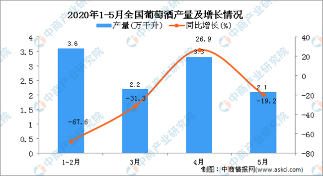• 2020年1-5月全國(guó)葡萄酒產(chǎn)量同比下降32%