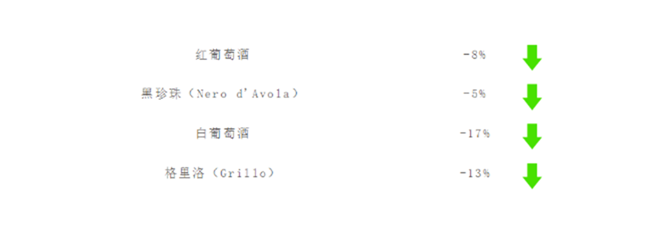 相較2018年,各葡萄品種增長(zhǎng)如下,由此可以看出,黑珍珠(Nero d'Avola)、格里洛(Grillo)等代表的本土品種大放異彩,已經(jīng)成為西西里葡萄酒的嶄新名片。