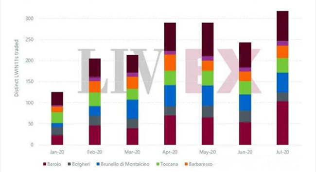 在2020年前7個月的倫敦佳釀交易所數(shù)據(jù)中,意大利精品葡萄酒的交易額上升了70%。