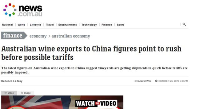 據(jù)了解,澳洲出口中國(guó)的葡萄酒出現(xiàn)激增情況是因?yàn)樾袠I(yè)擔(dān)憂中國(guó)會(huì)施加更加關(guān)稅,從而加快發(fā)貨。最近也有報(bào)道稱,中國(guó)進(jìn)口商也希望澳洲的葡萄酒莊園盡快發(fā)貨。