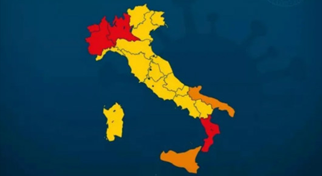 綜合意大利《24小時(shí)太陽(yáng)報(bào)》、安莎社、Fanpage網(wǎng)站等報(bào)道,意衛(wèi)生部將全國(guó)分為紅色、橙色和黃色3種不同風(fēng)險(xiǎn)地區(qū)。其中,最高風(fēng)險(xiǎn)的“紅區(qū)”包括:倫巴第(Lombardia)、皮埃蒙特(Piemonte)、卡拉布里亞(Calabria)、瓦萊達(dá)奧斯塔(Valle d'Aosta);中等風(fēng)險(xiǎn)的“橙區(qū)”包括:普利亞(Puglia)、西西里(Sicilia);其余地區(qū)均被歸為風(fēng)險(xiǎn)較低的“黃區(qū)”。根據(jù)目前疫情趨勢(shì),威尼托(Veneto)、利古里亞(Liguria)、坎帕尼亞(Campania)和托斯卡納(Toscana)的指標(biāo)已非常接近“橙區(qū)”。