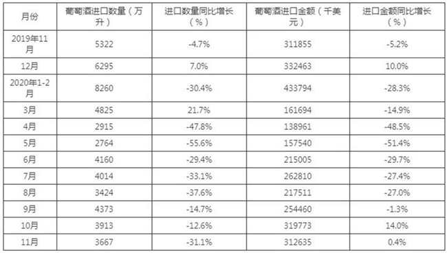 近一年中國葡萄酒進(jìn)口情況統(tǒng)計(jì)表