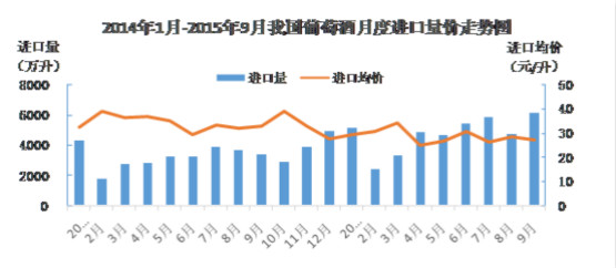 據(jù)海關(guān)數(shù)據(jù)統(tǒng)計,今年前三季度中國累計進口葡萄酒為4.3億升,比去年同期增加46.4%;進口平均價格為每升28.3元,下跌16%。9月當月進口6126萬升,同比增加78.4%,環(huán)比增加28.6%。