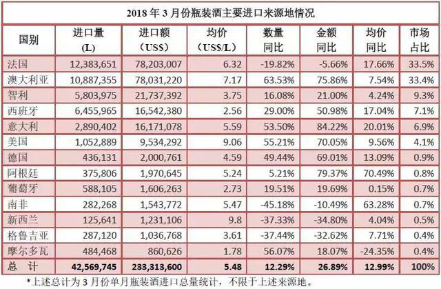 考慮到2月份春節(jié)的因素,綜合一季度數(shù)據(jù)來看,或能更加客觀、全面地反映近期瓶裝酒進(jìn)口的實(shí)際情況: