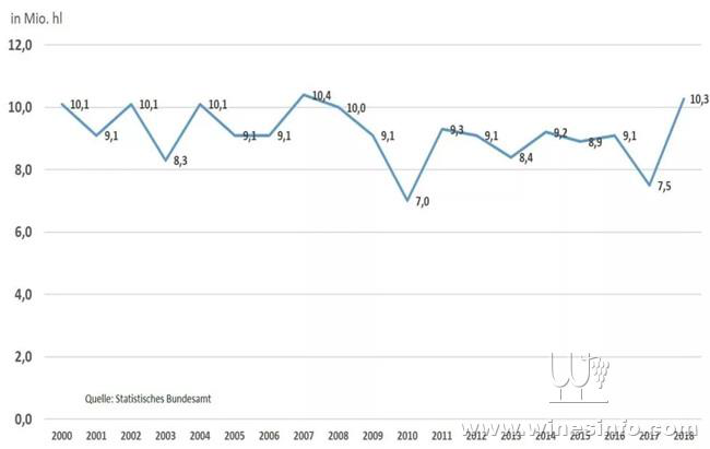 2018年德國葡萄酒的全國產(chǎn)量達(dá)到10.27億升。這個(gè)數(shù)值略低于2018年10月發(fā)布的10.67億升估計(jì)值。最新數(shù)據(jù)由德國葡萄酒協(xié)會(huì)(DWI)根據(jù)聯(lián)邦統(tǒng)計(jì)局的最終收獲結(jié)果予以發(fā)布。