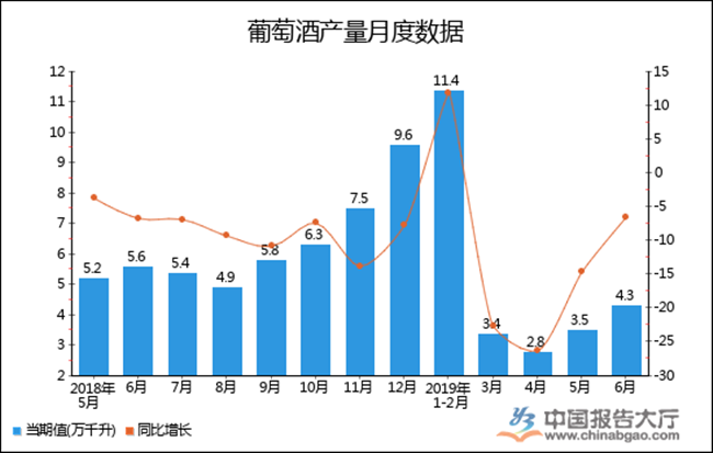以上就是2019年1-6月全國葡萄酒產(chǎn)量統(tǒng)計,數(shù)據(jù)來源于國家統(tǒng)計局及中國報告大廳數(shù)據(jù)中心整理發(fā)布,僅供參考。