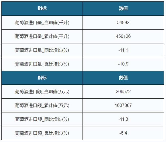 2019年1-8月我國葡萄酒進(jìn)口量累計下降10.9%