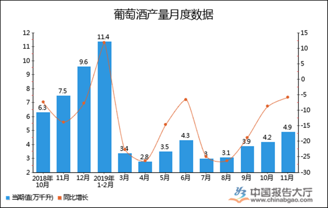 • 2019年1-11月全國(guó)葡萄酒產(chǎn)量統(tǒng)計(jì)分析
