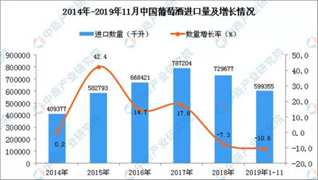 2019年市場(chǎng)一度被悲觀情緒所籠罩,原因是在經(jīng)過了2014-2017連續(xù)4年的高增長(zhǎng)之后,中國葡萄酒進(jìn)口市場(chǎng)迎來了2018和2019連續(xù)兩年進(jìn)口額下降。