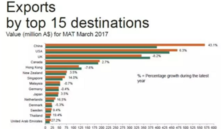 • 澳大利亞葡萄酒 管理局(Wine Australia)于2017年4月發(fā)布最新出口報(bào)告。報(bào)告顯示,在過(guò)去一年里,澳大利亞葡萄酒對(duì)中國(guó)大陸出口持續(xù)走強(qiáng),價(jià)量齊升!中國(guó)大陸依然保持澳大利亞葡萄酒出口額第一大市場(chǎng)的重要地位。 截止到2017年3月底的一年內(nèi),澳大利亞對(duì)中國(guó)大...