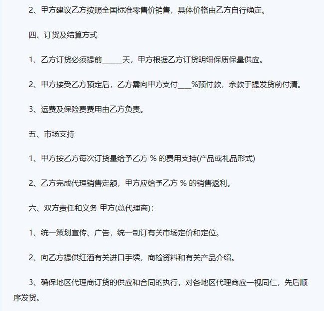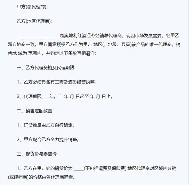 • 紅酒代理合同范本大全和注意事項(xiàng)