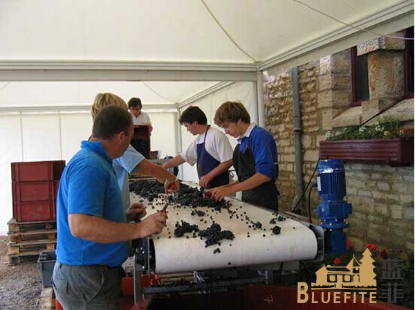 采摘后的葡萄將在釀酒師與工人、機(jī)械的配合下,完成從“出生”到“成長(zhǎng)”的轉(zhuǎn)變過程。從葡萄的破皮去梗、壓榨處理、發(fā)酵、澄清、深層過濾、冷穩(wěn)定、灌裝等每一個(gè)工藝流程,無不滲透著藍(lán)菲釀酒師的熱情和用心。